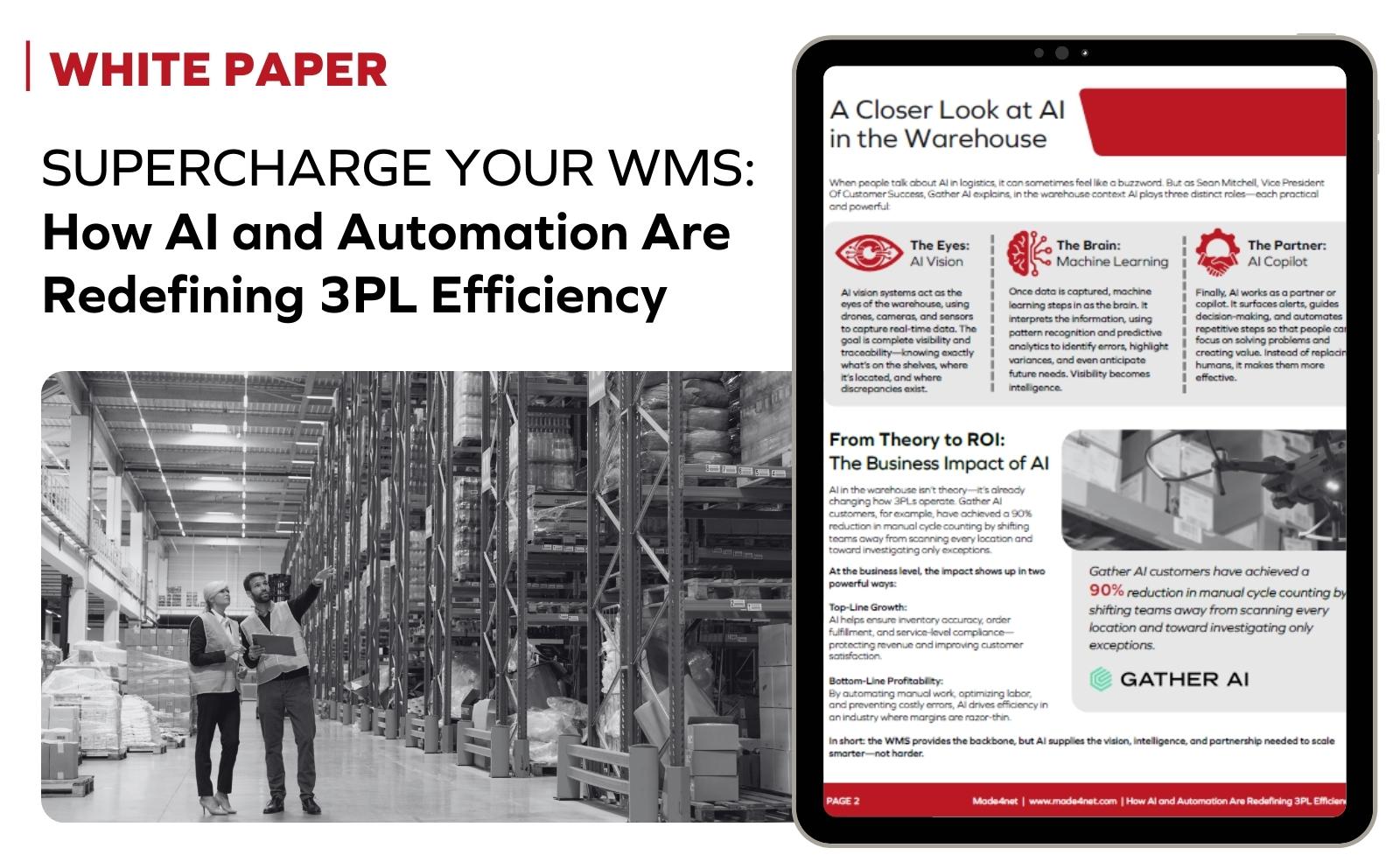 Categorized as Whitepaper Supercharge your WMS: How AI and Automation Are Redefining 3PL Efficiency If you’re running a 3PL today, you know the pressure is real. Margins are razor-thin, costs keep climbing, and customers